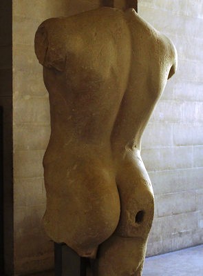 Trunchi de bărbat, Milet, 480-470 î. Hr. Marmură (poate de Paros). Înălțime: 1,32. A fost descoperit printre ruinele unui teatru roman. Paris, Luvru (Sursă: Facebook)