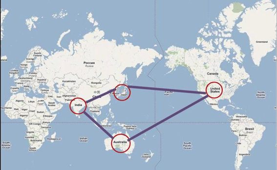 Quad es la abreviatura en inglés de “Quadrilateral Security Dialogue” (Diálogo Cuadrilateral de Seguridad), nombre adoptado en el 2007 – año de su creación – por la asociación de Australia, India, Japón y los EE.UU. para frenar el prepotente crecimiento chino. Y nació a iniciativa del Japón porque esta nación era la potencialmente más perjudicada por el auge comercial chino.