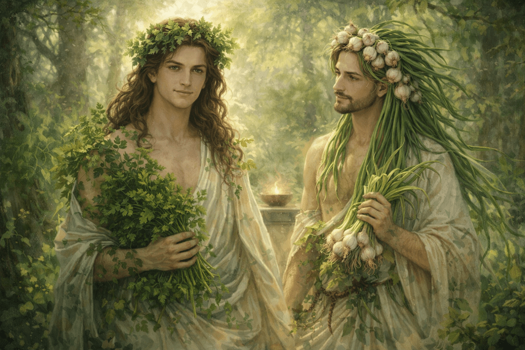 … δύο αρσενικές ουσίες: ο μαϊντανός και το φρέσκο, πράσινο σκόρδο…
