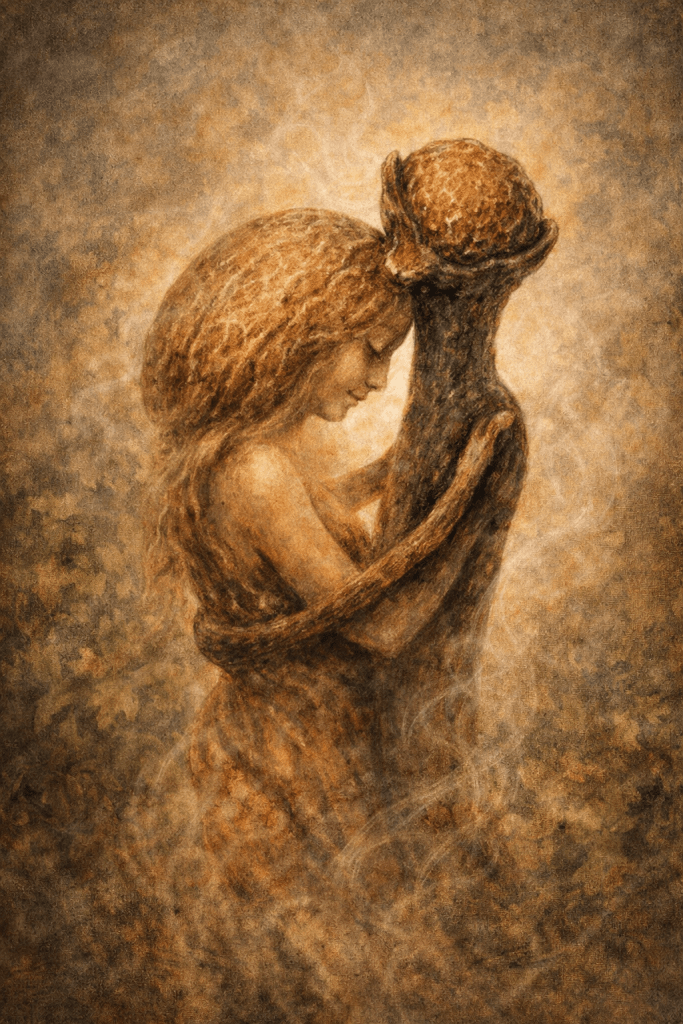 O fiertură scăzută în care s-au amestecat umorile atotroditoarei Demetra (în ipostaza ei de Glie-Geea) cu cele ale lui Dionisos, în ipostaza lui de mire al ei. O făceau bunicile tribului pentru a spori dragostea și rodnicia perechilor tinere și nu numai…