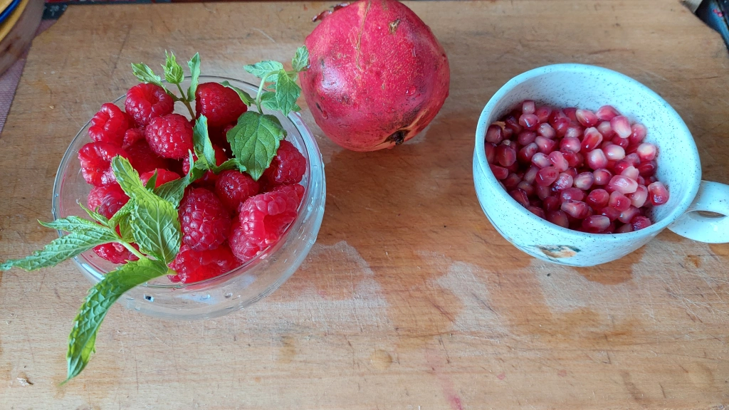 Rodia, pântecul cu 1.000 de semințe… zmeura, sora trandafirului, sublimarea feminității auguste, și menta, deschiderea minții… O dimineață în raiul Zeiței…
