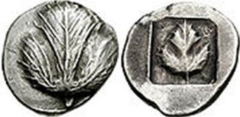 Monedă de argint din Selinunt, colonie grecească în Sicilia, unde pătrunjelul era emblema orașului înconjurat de câmpuri de pătrunjel (480-466 î. Hr.)