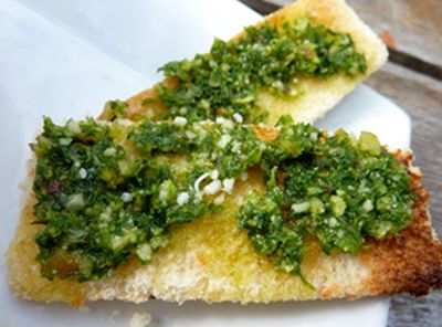 O persiadă mai bogată este sosul pesto cu pătrunjel (în loc de busuioc). Se face în felul următor: