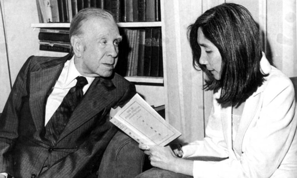 Borges și cea de-a doua și ultima soție, Maria Kodama. S-au căsătorit în 1986