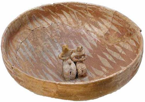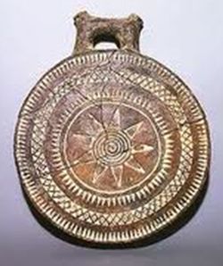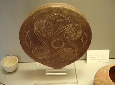 ImagenPintaderă  din lut ars  (a doua jumătate a mileniului V) descoperită la Cascioarele, jud. Călăraşi; Muzeul Civilizaţiei Gumelniţa, Oltenița