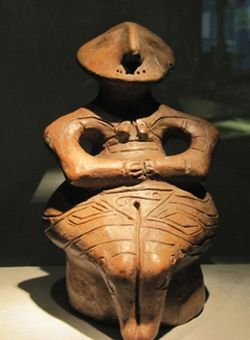 Zeiță cu coarne de berbec, cultura Vădastra (5000-4800 î. Hr.) Muzeul Național de Istorie a României, București