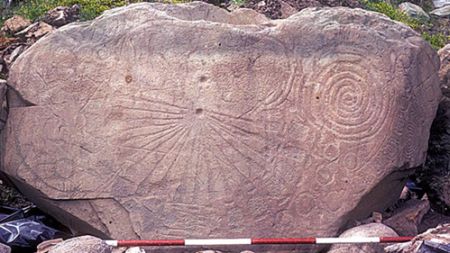 Nu întâmplător, în mormântul megalitic cu galerie de la Knowth (aprox. 2500-2000 î. Hr.), geamănul tell-ului de la Newgrange de care-l desparte doar un kilometru, s-a găsit un calendar solar cu spirale: