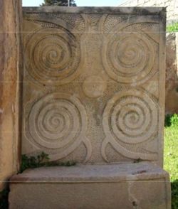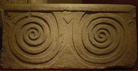 Spirala dublă falică pe o piatră de altar din Templul din Buggiba, Malta