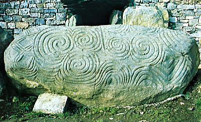 Poate cel mai celebru mormânt cu spirale este tumulul de la Newgrange, la nord de Dublin: