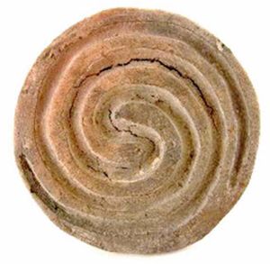 Pintaderă cu spirală dublă, eikon-ul echilibrului masculin-feminin; Gela, Sicilia (mil. V î. Hr.)