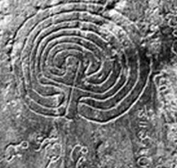 Cu mult înainte de a apărea labirintul-sanctuar (3D) a existat semnul labirintului, un graffito cunoscut în întreaga lume, gravat pe stânci, pe culmile dealurilor, pe vasele funerare sau pe sigilii. Cu el ar fi trebuit să începem, dar am preferat să lămurim mai întâi lucrurile legate de labirintul-sanctuar fie și pentru că însuși cuvântul labirint însemna … sanctuar sau templu.