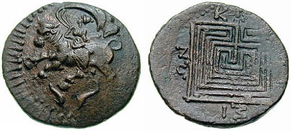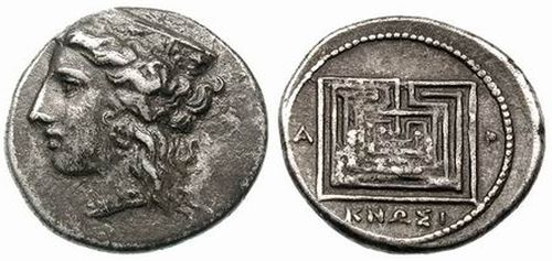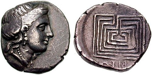 Monedele sunt târzii: sec. V î. Hr., adică au fost făcute o mie de ani mai târziu decât tăblița KnGg 702. Și nu sunt singurele de acest fel. „Bani” cu labirint pe avers și capete de regi sau de zei pe revers au fost descoperite în toată Asia Mică. Ceea ce înseamnă că labirintul era un semn magic ce aducea bogăția.