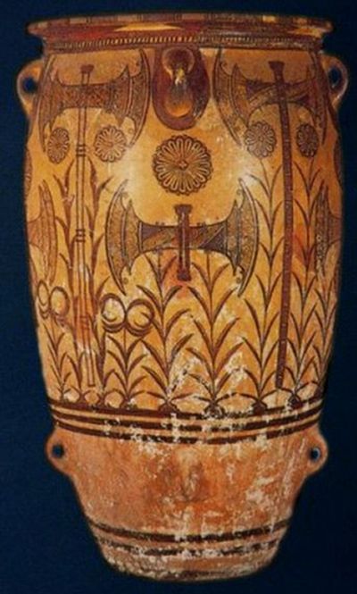 Vas/pithos cu labrys, palatul din Cnosos, Creta, 1500 î. Hr.