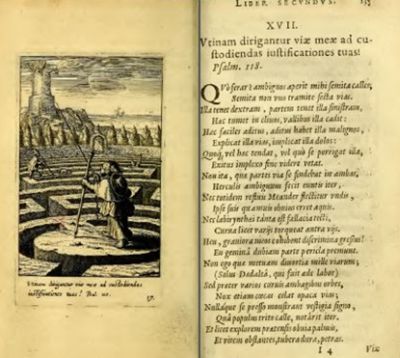 Aceste citate din Biblie dar și următoarele, pe care le găsim în Pia Desideria, în continuarea Poemului XVII, arată limpede de ce călugării miniaturiști, constructorii de catedrale și teologii au adoptat atât de ușor labirintul: era cea mai potrivită temă de meditație asupra progresului spiritual, asupra scopul vieţii, care este transfigurarea sau îndumnezeirea, Marea Operă, cum o numeau alchimiştii din mănăstiri.