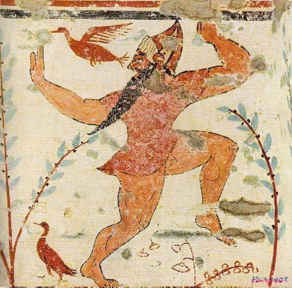 Phersu/Augur dansând, Tomba degli Auguri, necropoli dei Monterozzi (Etruria antică), Italia
