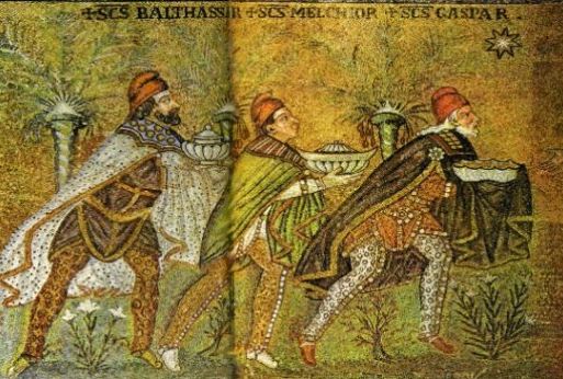 | Gathespa, Melhior şi Bithisarea sunt numele pe care Beda le-a văzut scrise pe un mozaic ce reprezenta Închinarea Magilor din caterala Sf. Apolinarie cel Nou din Ravenna. Se pare că aceste nume le-au fost date de chiar artistul bizantin anonim care a executat mozaicul. |