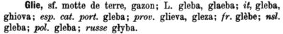 Iată articolul glie din Dictionnaire d’etymologie daco-romane (II) al lui Cihac: