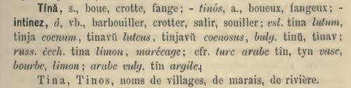 Iată articolul tină din Dictionnaire d’etymologie daco-romane (II) al lui Al. Cihac: