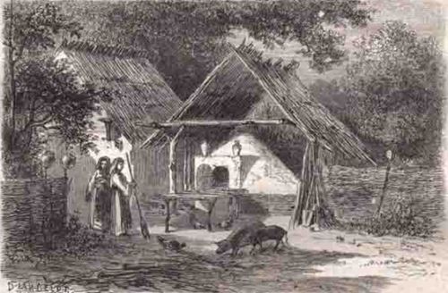 Cuptor țărănesc în Arges, România, 1860, gravură după un desen de A. Lancelot