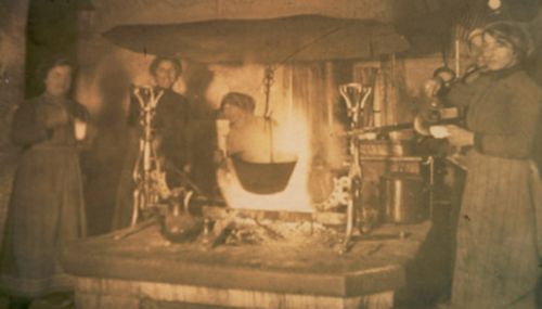 … și tot la vatră sau pe vatră se făceau toate cele cuvenite la naștere, la nuntă și la moarte (de vreme ce Zeița vetrei era una și aceeași cu Zeița Nașterii-Morții și Renașterii).