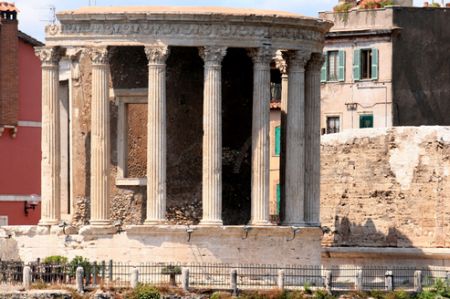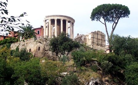 Templul ei era rotund, o rotondă ce amintea de „coliba de nuiele cu acoperiș de paie” de care vorbește Ovidiu în Faste (Cartea a VI-a) și, desigur, de „glia rotundă ca o minge”… cu care Vesta este… la fel.