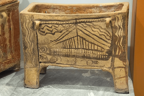 Corabie pictată pe o urnă minoană. Creta, perioada post-palațială, Muzeul Arheologic din Iraklion