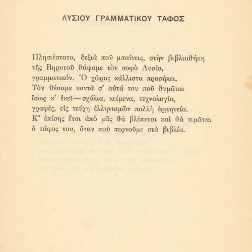 της Βηρυτού θάψαμε τον σοφό Λυσία,