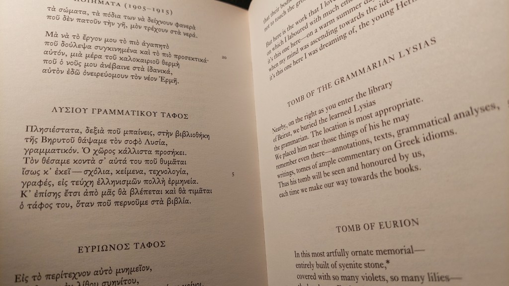 Nu-i limpede? Kavafis a scris Mormântul gramaticului Lysias doar pentru a etala opera unui gramatic:„… sholii, texte, lexicoane și gramatici, scrieri, tomuri întregi cu interpretări, glose și comentarii despre greaca vorbită…” în Diaspora/σχόλια, κείμενα, τεχνολογία, γραφές, εις τεύχη ελληνισμών πολλή ερμηνεία.” De fapt, l-a scris, ca pe multe altele, ca să arate lumii că greaca a fost limba celui mai vast imperiu politic și cultural din toate timpurile (ἑλληνική οἰκουμένη = Oἰκουμένη/lumea greacă = lumea locuită) și limba celei mai mari culturi a lumii din toate timpurile. Și să arate că, fără acești devoți ai Limbii, greaca ar fi dispărut de mult din comunitățile elenizate din Orient și de pretutindeni, din ἑλληνική οἰκουμένη.