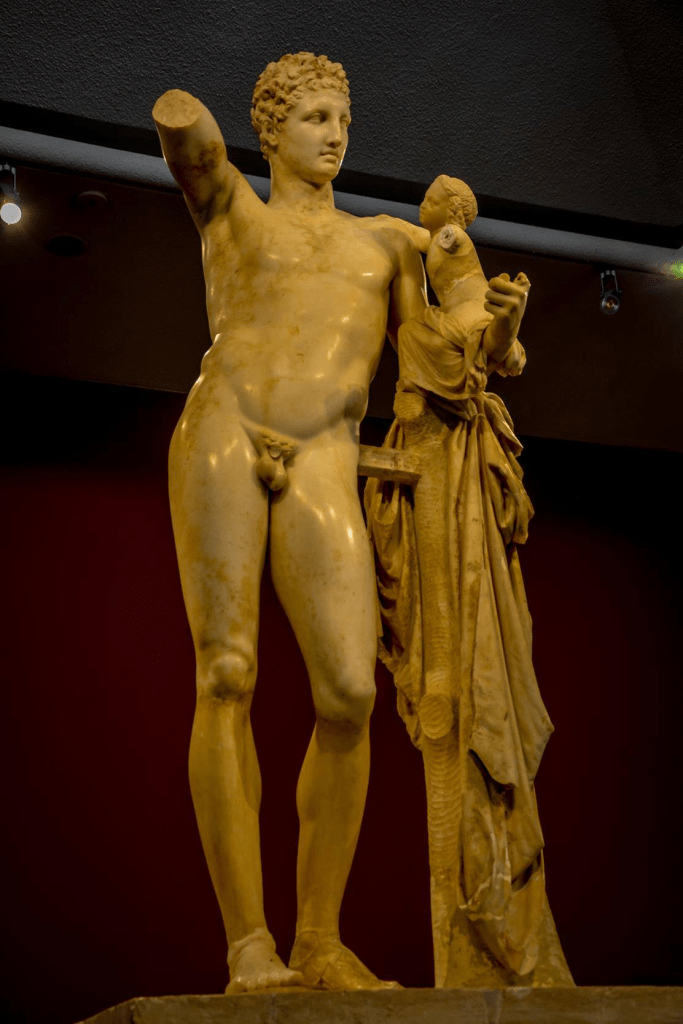 Hermes cu Dionisos copil, Praxitele, Muzeul Arheologic din Olimpia, Grecia